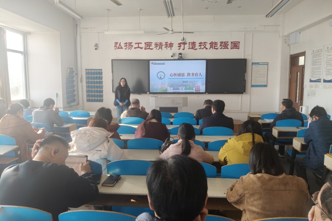为进一步加强师德师风建设,提升教育教学质量,11月18日下午,机电工程系在山润楼401教室举办师德师风专题讲座。学校师德宣讲团成员谭婧婧老师以“心怀感恩教书育人”为题做专题宣讲,讲座由系党总支副书记成元学主持,全系教职工现场聆听。