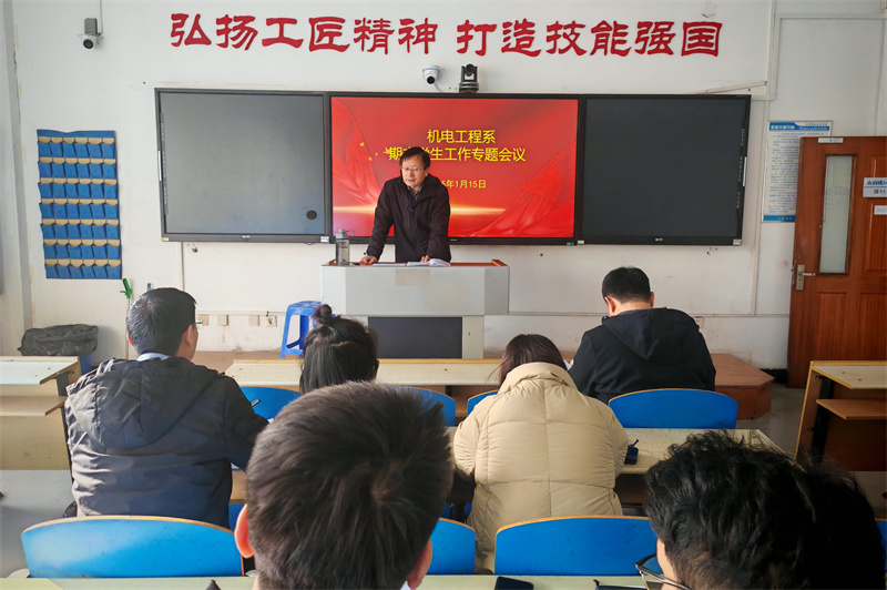 1月15日,机电工程系在山润楼305组织召开期末学生工作专题会议,聚焦假期前后校园安全稳定与各项学生工作落实。全体辅导员、班主任参加会议。
