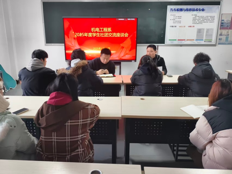 为加强学生社团之间的交流,提高社团的组织能力和凝聚力,1月15日下午,机电工程系于山润楼335室举办了2025年度学生社团交流座谈会。座谈会由学生科(团总支)科长张西进主持,辅导员以及各社团负责人参加。